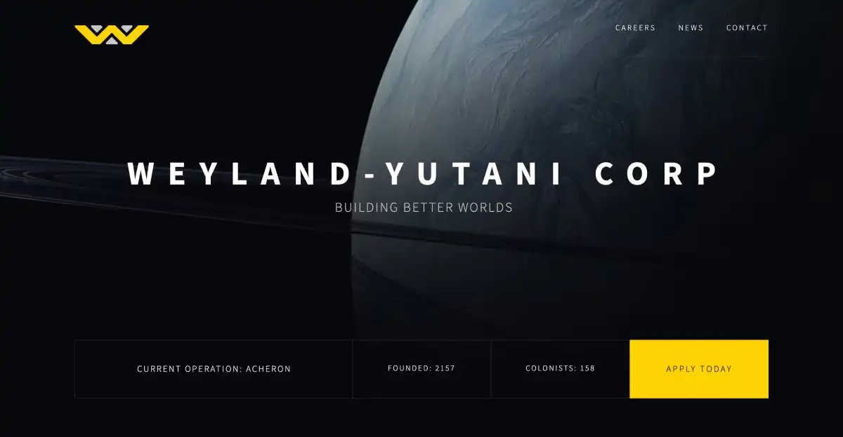 A Weyland-Yutani Corporation inspired Hugo theme, featuring animated transitions, and a corporate aesthetic.